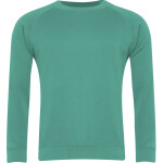 Ribbed collar. Taped neck. Side seams. Twin needle sleeves and hem.